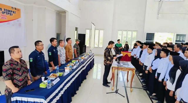TUNGKALJAYA, Beritategas.com – Mendekati Pemilu serentak 2024, Panwascam Kecamatan Tungkal Jaya Kabupaten Musi Banyuasin (Muba) melantik Pengawas Tempat Pemungutan Suara (PTPS) di Gedung Serbaguna kecamatan Tungkal Jaya, Senin (22/1/2024).