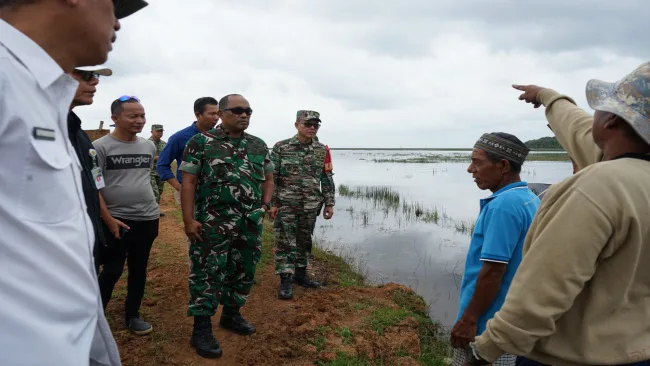 Dalam kegiatan ini, Danrem 044/Gapo Brigjen TNI Adry Koesdyanto bersama rombongan Itjen 1 Kementan meninjau langsung lokasi cetak sawah guna melihat kondisi lahan serta memastikan pelaksanaan program berjalan sesuai dengan ketentuan yang telah ditetapkan.