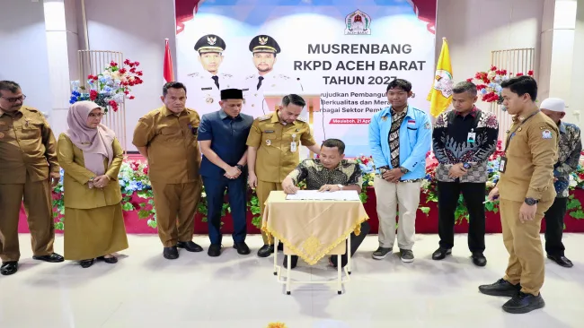 MEULABOH, Beritategas.com – Pemerintah Kabupaten Aceh Barat menggelar Musyawarah Perencanaan Pembangunan (Musrenbang) RKPD Tahun 2027 dengan mengusung tema “Mewujudkan Pembangunan yang Berkualitas dan Merata di Berbagai Sektor”. Kegiatan ini berlangsung di Aula Cabang Dinas Pendidikan Aceh Wilayah Aceh Barat, Selasa (21/4/2026).