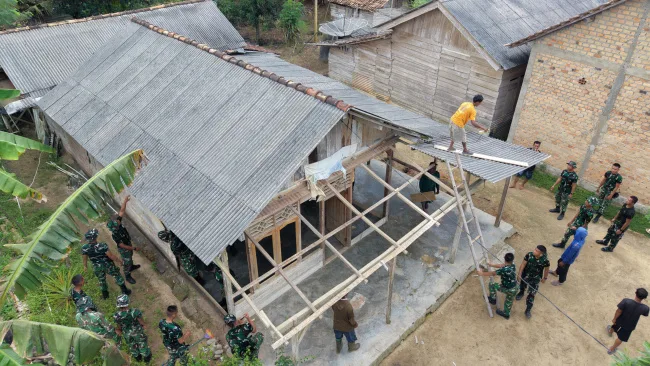 Kegiatan pembongkaran ini dilakukan secara gotong royong antara personel Satgas TMMD bersama masyarakat setempat. Dengan penuh semangat kebersamaan, mereka bahu-membahu membongkar bagian rumah yang sudah tidak layak, guna mempercepat proses pembangunan kembali menjadi hunian yang lebih layak dan sehat.