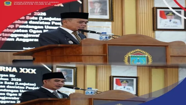 OGAN ILIR, Beritategas.com – Dewan Perwakilan Rakyat Daerah (DPRD) Kabupaten Ogan Ilir menggelar Rapat Paripurna XXX Masa Sidang ke-II Tahun 2026 pada pembicaraan tingkat kesatu (lanjutan), dalam rangka penyampaian dan/atau jawaban Bupati Ogan Ilir terhadap pandangan umum fraksi-fraksi DPRD atas Laporan Keterangan Pertanggungjawaban (LKPJ) Bupati Ogan Ilir Tahun Anggaran 2025.