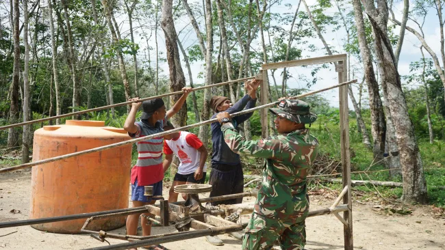 OGAN KOMERING ILIR, Beritategas.com — Upaya untuk mengatasi kesulitan air bersih bagi masyarakat terus dilakukan oleh Satgas TMMD Kodim 0402/OKI. Melalui program TNI Manunggal Membangun Desa (TMMD), pembangunan satu unit sumur bor saat ini terus dikerjakan dan telah mencapai progres sekitar 20 persen.