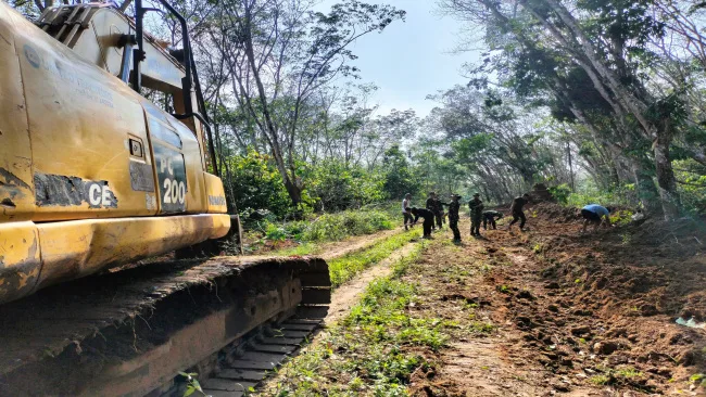 Dengan semangat gotong royong, personel Satgas TMMD bersama warga setempat bahu-membahu mempercepat proses pembukaan jalan. Berbagai peralatan, baik manual maupun alat berat, dikerahkan guna menunjang kelancaran pekerjaan di lapangan.