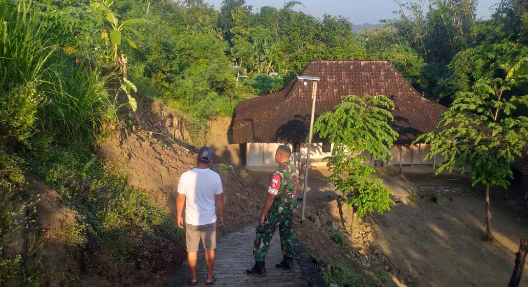 BOYOLALI, Beritategas.com – Babinsa Koramil 18/Kodim 0724/Boyolali Sertu Sujanto bersama Kades Watugede Sriyanto mendatangi lokasi kejadian tanah longsor yang terjadi di Dukuh Bedeg, Desa Watugede, Kecamatan Kemusu, Kabupaten Boyolali, Minggu (14/04/24).