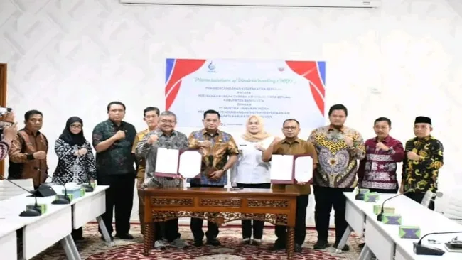 BANYUASIN, Beritategas.com – Dalam upaya memenuhi kebutuhan air minum masyarakat, Pemerintah Kabupaten Banyuasin melakukan penandatanganan Memorandum of Understanding (MoU) atau kesepakatan bersama antara PDAM Tirta Betuah Kabupaten Banyuasin dengan PT Mustika Jimbaran Indah (MJI).
