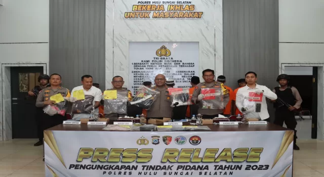 “Jumlah kriminalitas yang terjadi di HSS secara umum mengalami penurunan. Apabila dibandingkan dengan 2022 maka turun 16 persen atau 25 kasus,” kata Leo Martin saat jumpa pers akhir tahun 2023 di Kandangan, Minggu (31/12).