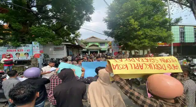 “Kami meminta Walikota Medan untuk segera memecat Kadisdukcapil dari jabatannya,” ujar Fahri dan turut didampingi Koordinator Aksi, Khairum Siregar dan Koordinator Lapangan, M. Ridho.