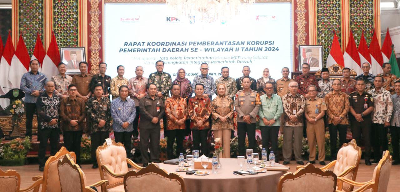 MUARA ENIM, Beritategas.com – Pemerintah Kabupaten Muara Enim berkomitmen meningkatkan nilai Monitoring Center for Prevention (MCP) dengan terus melakukan monitoring capaian kinerja program pencegahan korupsi melalui perbaikan tata kelola pemerintahan. Hal ini ditegaskan Pj. Bupati Muara Enim, Dr. H. Ahmad Rizali, M.A., saat menghadiri rapat koordinasi Program Pemberantasan Korupsi Wilayah II, Diseminasi MCP Tahun 2024 yang diselenggarakan Komisi Pemberantasan Korupsi (KPK) di Griya Agung Palembang, Selasa (23/04/24).