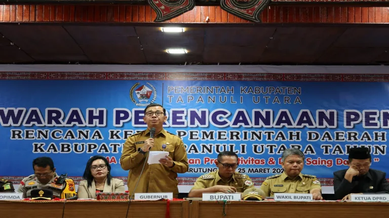 TARUTUNG, Beritategas.com – Gubernur Sumatera Utara, Bobby Nasution mengingatkan, Musyawarah Perencanaan Pembangunan (Musrenbang) Rencana Kerja Pemerintah Daerah (RKPD) Kabupaten Tapanuli Utara Tahun 2026 harus benar-benar bermanfaat bagi masyarakat. Menurutnya, perencanaan pembangunan harus inklusif, berkelanjutan, dan sesuai dengan kebutuhan rakyat.