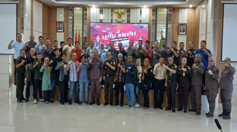 JAMBI, Beritategas.com – Kepala Kejaksaan Tinggi (Kajati) Jambi, Sugeng Hariadi bersama Wakil Kepala Kejati (Wakajati) Jambi, Dr Bima Suprayoga melakukan coffee morning bersama wartawan, Kamis (30/10/2025).