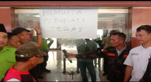 SEKAYU, Beritategas.com – Ratusan Massa geruduk kantor Bupati Musi Banyuasin (Muba), aksi damai ini mempertanyakan sikap Pj Bupati Muba H.Sandi Fahlepi,SP.MS.i terhadap Unjuk Rasa (Unras) yang dilaksanakan pada hari Senin, 18 November 2024. Aksi damai ini dimulai dari Stadion Serasan Sekate melewati jalan Kol. Wahid Udin dan berakhir dengan penyegelan kantor Bupati Musi Banyuasin, Jumat (22/11/2024).