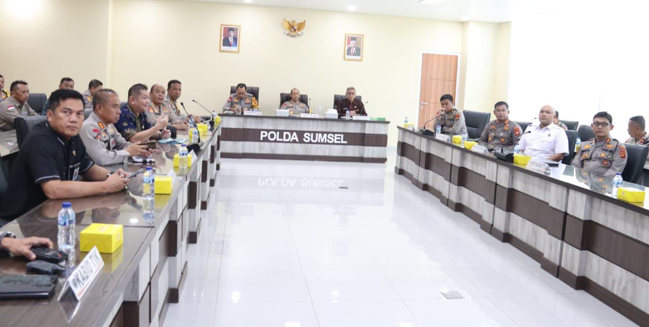PALEMBANG, Beritategas.com – Kapolda Sumsel Irjen. Pol. A. Rachmad Wibowo SIK., Wakapolda Sumsel Brigjen. Pol. M. Zukarnain, SIK, MSi, Kadis Pertanian Tanaman Pangan Provinsi Sumsel Dr. Ir. H. R. Bambang Pramono, MSi, mengikuti kegiatan Penandatanganan Memorandum of Understanding (MoU) antara Kementerian Pertanian dan Polri secara daring, Kamis (25/04/2024) bertempat di ruang Vicon lantai II gedung utama Polda Presisi Polda Sumsel.