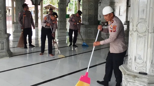 Ipda Saiful Bahri mengatakan, kegiatan tersebut merupakan bentuk kepedulian Polri terhadap kebersihan tempat ibadah sekaligus upaya mempererat hubungan dengan masyarakat.