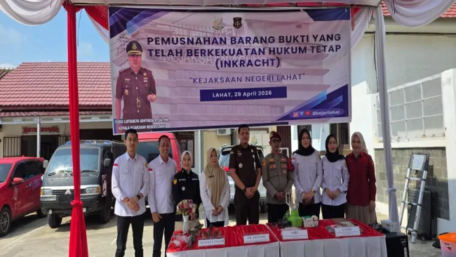 LAHAT, Beritategas.com – Bertempat di halaman kantor Kejaksaan Negeri Lahat, Kejaksaan Negeri Lahat melaksanakan Pemusnahan Barang Bukti (inkracht) periode bulan Desember 2025 sampai Maret 2026, Rabu (29/04/2026).