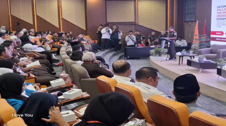 Seminar dengan tema “Optimalisasi Pendekatan follow the Asset dan Follow the Money melalui Deffered Prosecution Agrement dalam Perkara Penanganan Pidana” yang berlangsung di Lantai 1 Gedung UNIFAC Universitas Jambi, pada Rabu (27/08/2025).