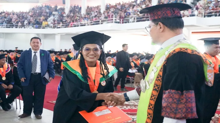 Di antara para wisudawan UNJA yang mengenakan toga kebanggaan, hadir sosok inspiratif dari ujung timur Indonesia, Arlina Karoba yang merupakan mahasiswa asal Wamena, Papua Pegunungan.