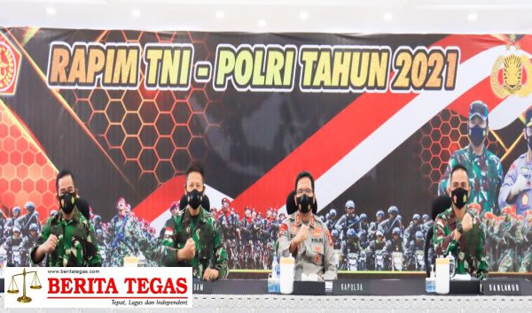 Panglima TNI, Marsekal TNI Hadi Tjahjanto dalam acara menyampaikan, Rapim TNI-Polri tahun 2021 mengangkat tema, “Dilandasi Profesionalisme, Soliditas dan Sinergitas TNI-Polri Siap Mendukung Penanggulangan Paripurna Covid-19 dan Pemulihan Ekonomi Nasional dalam menjaga Persatuan dan Kesatuan Bangsa menuju Indonesia Maju”.