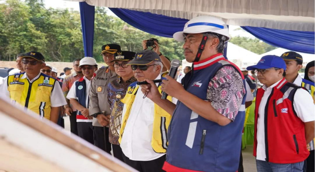 Dalam peninjauan ini, Menteri Basuki dan Pj. Bupati Banyuasin Hani S. Rustam bersama rombongan melihat dan mendengarkan paparan terkait Jalan Tol Trans Sumatera dari Pihak Waskita terkait berapa persen pembangunan jalan tol yang telah dieksekusi dan kekurangan apa saja yang harus dibenahi atau ditambahi.