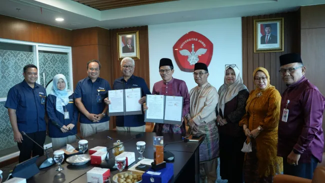 JAMBI, Beritategas.com – Universitas Jambi (UNJA) menandatangani Memorandum of Understanding (MoU) dengan Perusahaan Umum (Perum) Badan Urusan Logistik (BULOG) Pusat dalam rangka memperkuat kerja sama akademik dan mendukung ketahanan pangan nasional. Penandatanganan MoU ini berlangsung di Ruang Rapat Rektor Gedung UNIFAC Lantai 7 UNJA Mendalo, Selasa (6/1/2026).