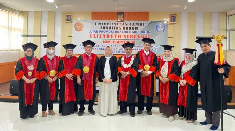 JAMBI, Beritategas.com – Program Doktor Ilmu Hukum Fakultas Hukum Universitas Jambi menggelar sidang Promosi Doktor Hukum atas nama Elizabeth Siregar dengan mengangkat judul Disertasi “Reformulasi Kebijakan Hukum Pidana Terhadap Kekerasan Seksual Dalam Upaya Perlindungan Perempuan”. Sidang promosi Doktor dilaksanakan di Ruang Prof. Dr. Bahder Johan Nasution, S.H., M.Hum. Pascasarjana Universitas Jambi pada Selasa (07/01/2025).