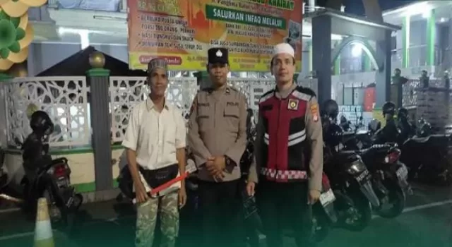 Terbaru, dua personel Sat Samapta Polres Banjarbaru bersama warga menjaga jamaah masjid Kanzul Khairat Banjarbaru yang sedang melaksanakan shalat tarawih, Kamis (4/4) malam.
