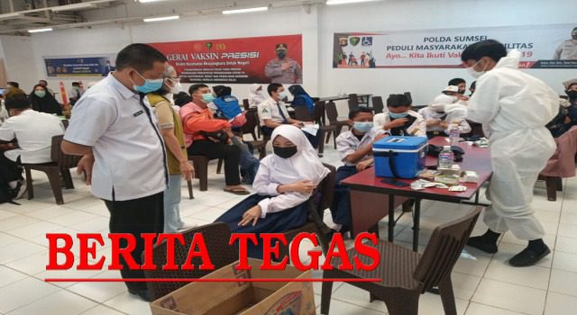 Polda sumsel yang diwakili AKBP Mahyudi sub biddokkes mengatakan, kegiatan vaksinasi ini untuk mencegah penyebaran covid-19 di lingkungan sekolah.