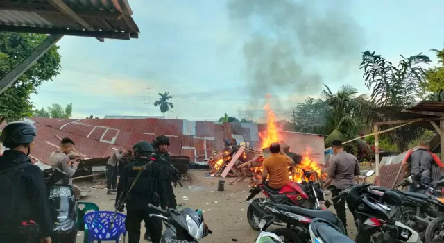 pemusnahan lima gubuk yang digunakan untuk penjualan dan memakai narkoba.