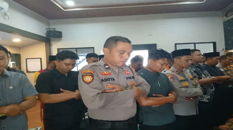 KARIMUN, Beritategas.com – Polres Karimun bersama Polsek jajaran melaksanakan Shalat Ghaib dan Doa Bersama sebagai bentuk belasungkawa atas wafatnya almarhum Affan Kurniawan, pengemudi ojek online yang menjadi korban dalam kericuhan aksi demonstrasi di Jakarta, sekaligus doa bersama untuk keselamatan bangsa dan negara serta perlindungan bagi para petugas keamanan dalam menjalankan tugas.