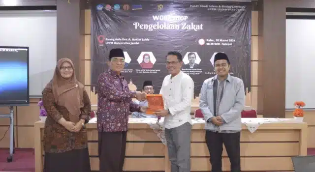 JAMBI, Beritategas.com – Pusat Studi Islam dan Budaya Melayu Lembaga Penelitian dan Pengabdian Kepada Masyarakat (LPPM) Universitas Jambi (UNJA) menyelenggarakan kegiatan workshop pengelolaan zakat bertempat di Aula LPPM UNJA Rabu (20/3/2024).