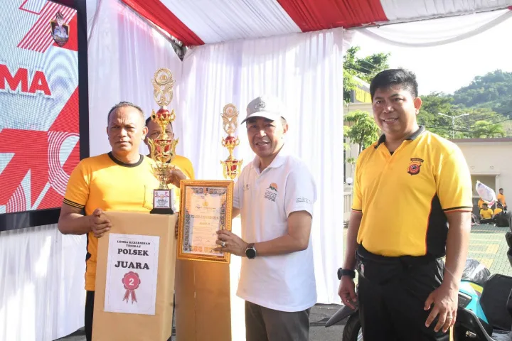 Dalam kesempatan tersebut, Sekda turut serta menyerahkan hadiah kepada para pemenang lomba yang diselenggarakan oleh Polres Sukabumi.