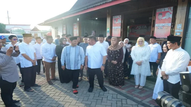 BANYUASIN, Beritategas.com – Silahturahmi dan Safari Ramadhan 1446 Hijriah bersama Gubernur H. Herman Deru, SH., MH dan Forkopimda Sumatera Selatan digelar di Kediaman Bupati Banyuasin, Dr. H. Askolani, SH., MH, Sukajadi, Kecamatan Talang Kelapa, Banyuasin, Kamis (13/3/2025).