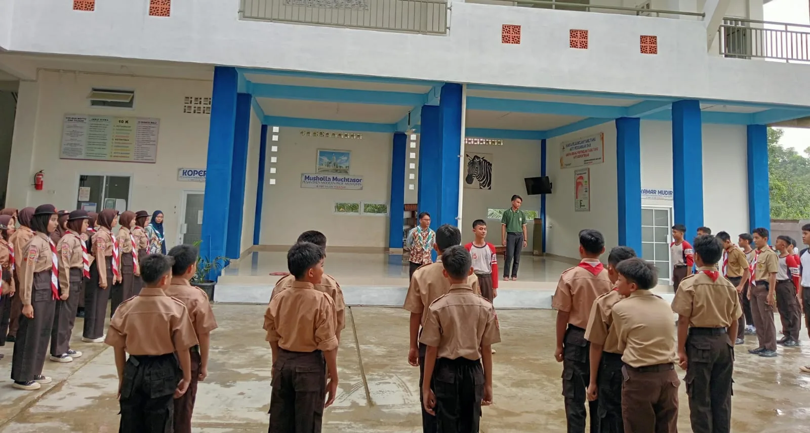 Kegiatan Pramuka perdana setelah libur lebaran ini disambut antusias oleh seluruh anggota Pramuka penggalang SMP Islam Terapan Prof. Muhajirin. Puluhan peserta didik yang tergabung dalam berbagai regu tampak bersemangat mengikuti upacara pembukaan yang dipimpin langsung oleh Pembina Pramuka sekolah.