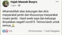 Bupati Muaro Jambi Sembuh Dari Covid-19