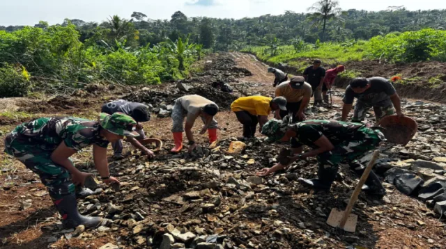 Hari Kedua TMMD ke-126 Kodim 0601/Pandeglang, TNI Gotong Royong Bersama Masyarakat Bangun Jalan Desa