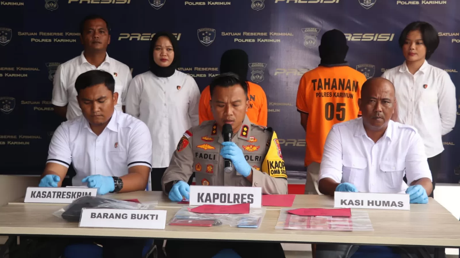 Ungkap kasus ini dipimpin oleh Kapolres Karimun AKBP Fadli Agus, S.I.K., M.H. didampingi oleh Kasat Reskrim Polres Karimun AKP Gidion Karo Sekali, S.T.K. , S.I.K. dan Kasubsi Penmas Sihumas Polres Karimun yang dilaksanakan di depan ruangan Resmob Polres Karimun.