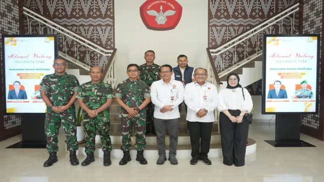 JAMBI, Beritategas.com – Universitas Jambi (UNJA) menerima kunjungan resmi dari jajaran Korem 042/Garuda Putih (Gapu) dalam rangka memperkuat sinergi kelembagaan. Pertemuan strategis ini berlangsung di Ruang Rapat Rektor Lt. 7, Gedung UNIFAC UNJA Mendalo, pada Senin, (13/04/2026).