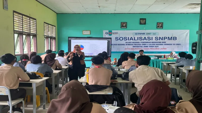 JAMBI, Beritategas.com – Kegiatan sosialisasi Seleksi Nasional Penerimaan Mahasiswa Baru (SNPMB) Tahun 2025 melalui jalur Seleksi Nasional Berbasis Prestasi (SNBP) telah resmi dimulai sejak 21 Januari 2025 dan akan berlangsung hingga akhir Januari 2025. Sosialisasi di Kabupaten Tanjung Jabung Timur (Tanjabtim), tepatnya di SMK Negeri 1 Tanjabtim dilaksanakan pada hari Rabu (22/01/2025).