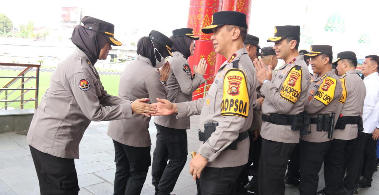 Nampak barisan Wadir, Kabag, Kasubdit, Pamen, Pama, Bintara, PNS Polda Sumsel mengular panjang untuk bersalam salaman saling maaf-memaafkan dengan Kapolda Sumsel, Wakapolda Sumsel, Pejabat Utama Polda Sumsel.
