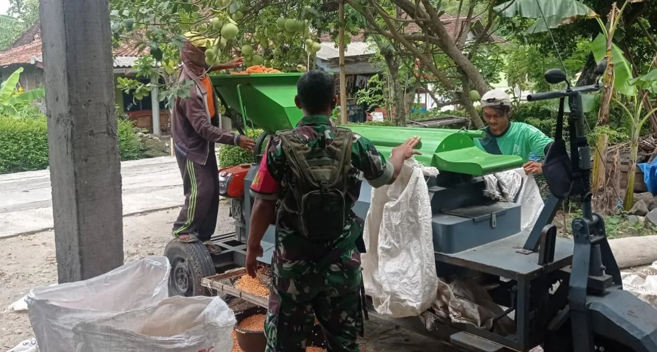 SRAGEN, Beritategas.com – Sebagai upaya mendukung program pemerintah meningkatkan ketahanan pangan, Serda Ibrahim Babinsa Kelurahan Kwangen Koramil 15/Gemolong, Kodim 0725/Sragen membantu petani yang merupakan warga binaan menggiling padi menggunakan mesin penggiling di Dukuh Gemulung RT 12, Kelurahan Kwangen, Kecamatan Gemolong, Kabupaten Sragen, Senin (06/05/24).